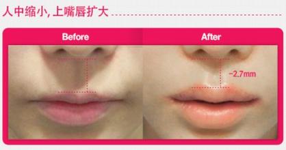 3.唇弓再造术:适用于老年人因上唇皮肤老化松垂所致的薄唇,伴唇弓不明显者明显高效更佳。该术式一般不用于青年,因为年轻人术后易留下瘢痕。